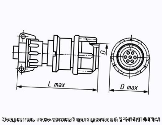 Соединитель 2РМ14КПН4Г1А1 цилиндрический низкочастотный негерметичный объемного монтажа с резьбовой фиксацией сочлененного положения.