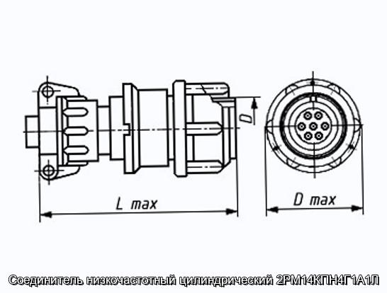 Соединитель 2РМ14КПН4Г1А1Л цилиндрический низкочастотный негерметичный объемного монтажа с резьбовой фиксацией сочлененного положения.