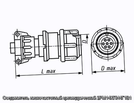 Соединитель 2РМ14КПН4Г1В1 цилиндрический низкочастотный негерметичный объемного монтажа с резьбовой фиксацией сочлененного положения.