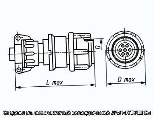 Соединитель 2РМ14КПН4Ш1В1 цилиндрический низкочастотный негерметичный объемного монтажа с резьбовой фиксацией сочлененного положения.