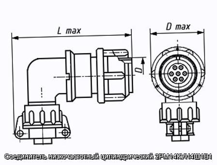 Соединитель 2РМ14КУН4Ш1В1 цилиндрический низкочастотный негерметичный объемного монтажа с резьбовой фиксацией сочлененного положения.