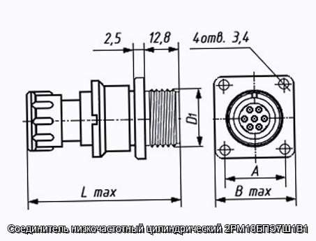 Соединитель 2РМ18БПЭ7Ш1В1 цилиндрический низкочастотный негерметичный объемного монтажа с резьбовой фиксацией сочлененного положения.