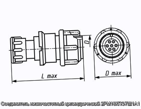 Соединитель 2РМ18КПЭ7Ш1А1 цилиндрический низкочастотный негерметичный объемного монтажа с резьбовой фиксацией сочлененного положения.