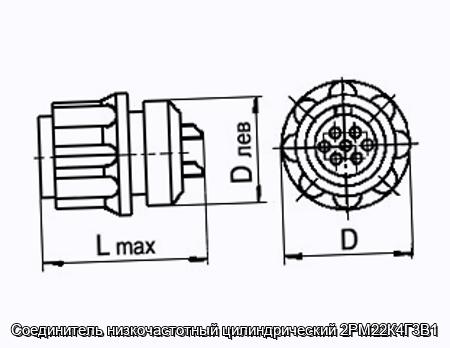 Соединитель 2РМ22К4Г3В1 цилиндрический низкочастотный негерметичный объемного монтажа с резьбовой фиксацией сочлененного положения.
