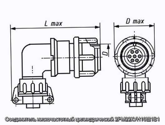 Соединитель 2РМ22КУН10Ш1В1 цилиндрический низкочастотный негерметичный объемного монтажа с резьбовой фиксацией сочлененного положения.