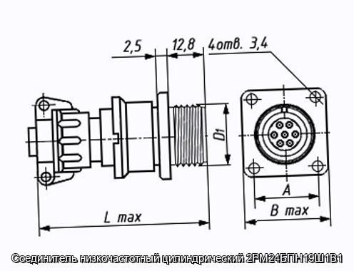Соединитель 2РМ24БПН19Ш1В1 цилиндрический низкочастотный негерметичный объемного монтажа с резьбовой фиксацией сочлененного положения.