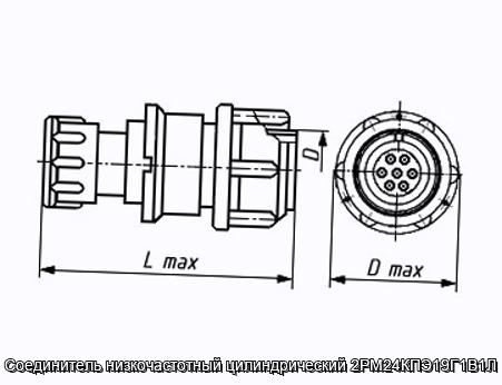 Соединитель 2РМ24КПЭ19Г1В1Л цилиндрический низкочастотный негерметичный объемного монтажа с резьбовой фиксацией сочлененного положения.