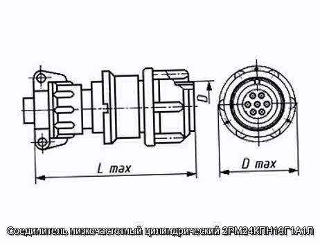 Соединитель 2РМ24КПН19Г1А1Л цилиндрический низкочастотный негерметичный объемного монтажа с резьбовой фиксацией сочлененного положения.