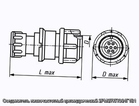 Соединитель 2РМ27КПЭ24Г1В1 цилиндрический низкочастотный негерметичный объемного монтажа с резьбовой фиксацией сочлененного положения.