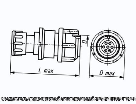 Соединитель 2РМ27КПЭ24Г1В1Л цилиндрический низкочастотный негерметичный объемного монтажа с резьбовой фиксацией сочлененного положения.