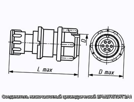 Соединитель 2РМ27КПЭ7Г2А1 цилиндрический низкочастотный негерметичный объемного монтажа с резьбовой фиксацией сочлененного положения.