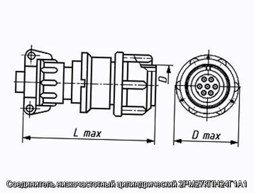 Соединитель 2РМ27КПН24Г1А1 цилиндрический низкочастотный негерметичный объемного монтажа с резьбовой фиксацией сочлененного положения.