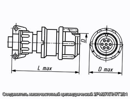 Соединитель 2РМ27КПН7Г2В1 цилиндрический низкочастотный негерметичный объемного монтажа с резьбовой фиксацией сочлененного положения.