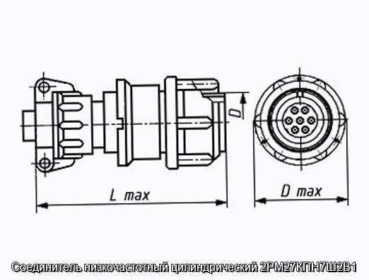 Соединитель 2РМ27КПН7Ш2В1 цилиндрический низкочастотный негерметичный объемного монтажа с резьбовой фиксацией сочлененного положения.