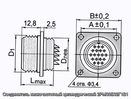 Соединитель 2РМ30Б32Г1В1 цилиндрический низкочастотный негерметичный объемного монтажа с резьбовой фиксацией сочлененного положения.