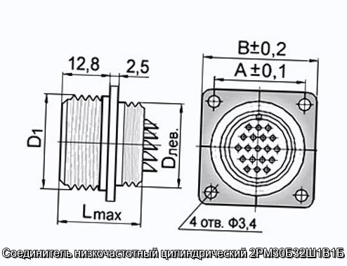 Соединитель 2РМ30Б32Ш1В1Б цилиндрический низкочастотный негерметичный объемного монтажа с резьбовой фиксацией сочлененного положения.