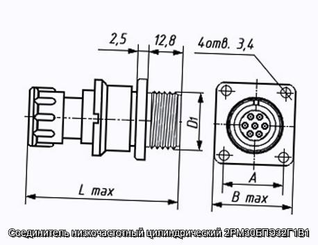 Соединитель 2РМ30БПЭ32Г1В1 цилиндрический низкочастотный негерметичный объемного монтажа с резьбовой фиксацией сочлененного положения.