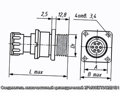 Соединитель 2РМ30БПЭ32Ш1В1 цилиндрический низкочастотный негерметичный объемного монтажа с резьбовой фиксацией сочлененного положения.