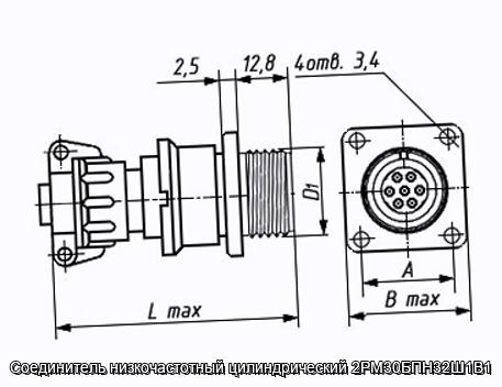 Соединитель 2РМ30БПН32Ш1В1 цилиндрический низкочастотный негерметичный объемного монтажа с резьбовой фиксацией сочлененного положения.