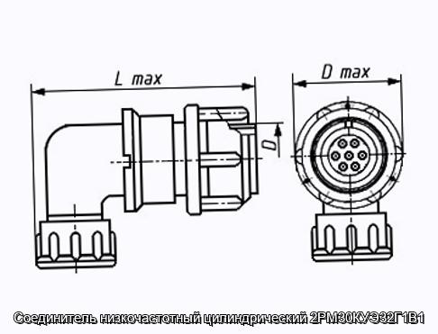 Соединитель 2РМ30КУЭ32Г1В1 цилиндрический низкочастотный негерметичный объемного монтажа с резьбовой фиксацией сочлененного положения.