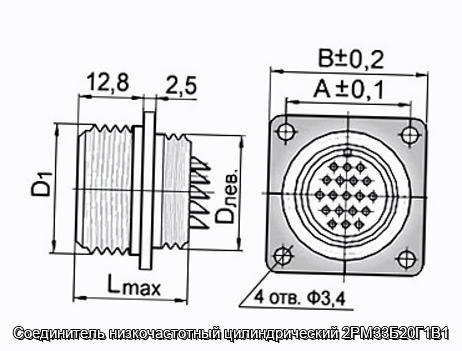 Соединитель 2РМ33Б20Г1В1 цилиндрический низкочастотный негерметичный объемного монтажа с резьбовой фиксацией сочлененного положения.