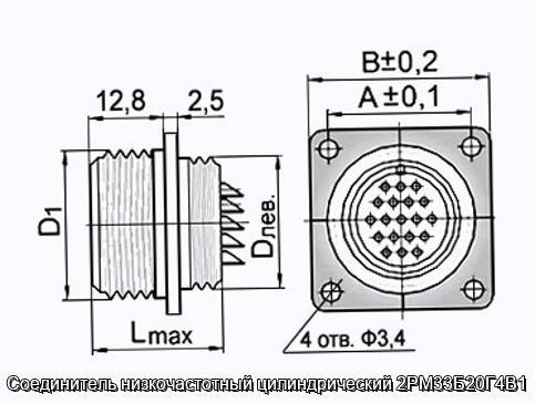 Соединитель 2РМ33Б20Г4В1 цилиндрический низкочастотный негерметичный объемного монтажа с резьбовой фиксацией сочлененного положения.