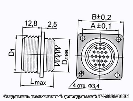 Соединитель 2РМ33Б20Ш4В1 цилиндрический низкочастотный негерметичный объемного монтажа с резьбовой фиксацией сочлененного положения.