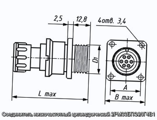 Соединитель 2РМ33БПЭ20Г4В1 цилиндрический низкочастотный негерметичный объемного монтажа с резьбовой фиксацией сочлененного положения.