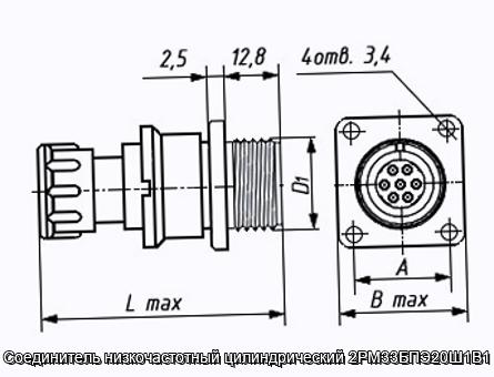 Соединитель низкочастотный цилиндрический 2РМ33БПЭ20Ш1В1 - фотография № 1.