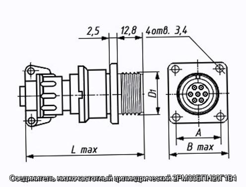 Соединитель 2РМ33БПН20Г1В1 цилиндрический низкочастотный негерметичный объемного монтажа с резьбовой фиксацией сочлененного положения.