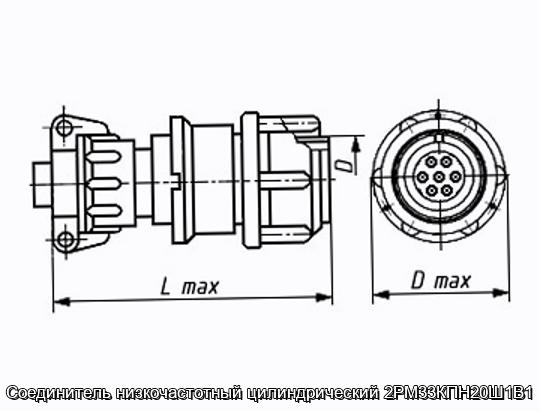 Соединитель 2РМ33КПН20Ш1В1 цилиндрический низкочастотный негерметичный объемного монтажа с резьбовой фиксацией сочлененного положения.