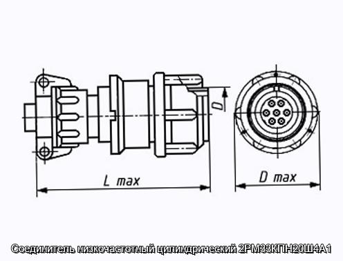 Соединитель 2РМ33КПН20Ш4А1 цилиндрический низкочастотный негерметичный объемного монтажа с резьбовой фиксацией сочлененного положения.