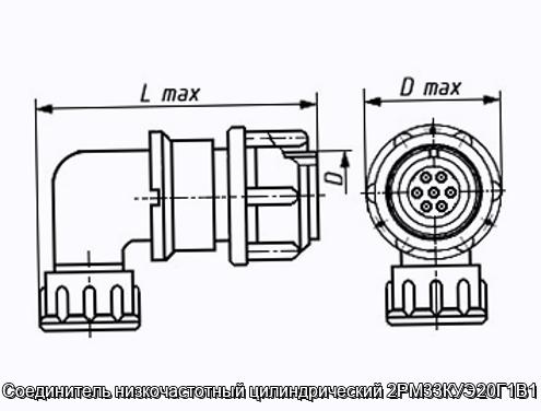 Соединитель 2РМ33КУЭ20Г1В1 цилиндрический низкочастотный негерметичный объемного монтажа с резьбовой фиксацией сочлененного положения.