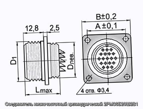 Соединитель 2РМ36Б20Ш2В1 цилиндрический низкочастотный негерметичный объемного монтажа с резьбовой фиксацией сочлененного положения.