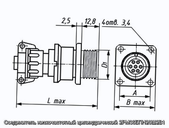 Соединитель 2РМ36БПН20Ш2В1 цилиндрический низкочастотный негерметичный объемного монтажа с резьбовой фиксацией сочлененного положения.