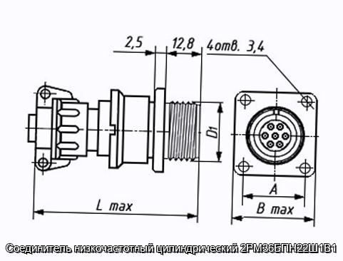 Соединитель 2РМ36БПН22Ш1В1 цилиндрический низкочастотный негерметичный объемного монтажа с резьбовой фиксацией сочлененного положения.