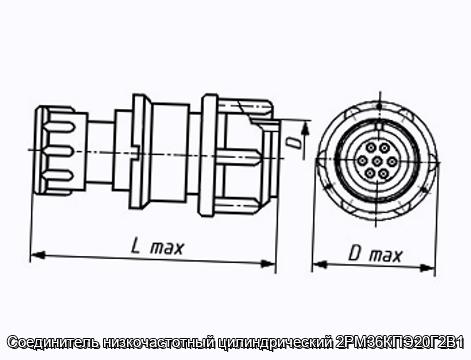 Соединитель 2РМ36КПЭ20Г2В1 цилиндрический низкочастотный негерметичный объемного монтажа с резьбовой фиксацией сочлененного положения.