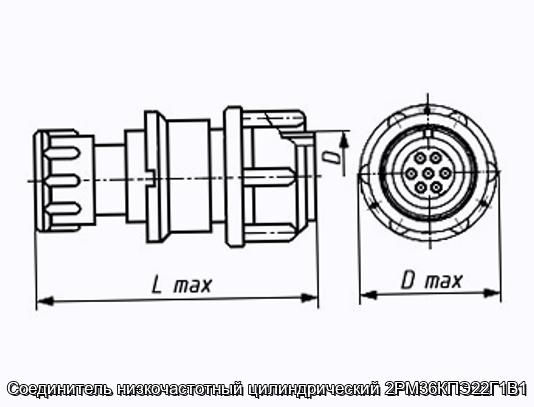 Соединитель 2РМ36КПЭ22Г1В1 цилиндрический низкочастотный негерметичный объемного монтажа с резьбовой фиксацией сочлененного положения.