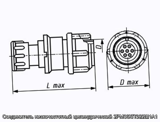 Соединитель 2РМ36КПЭ22Ш1А1 цилиндрический низкочастотный негерметичный объемного монтажа с резьбовой фиксацией сочлененного положения.