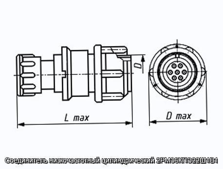 Соединитель 2РМ36КПЭ22Ш1В1 цилиндрический низкочастотный негерметичный объемного монтажа с резьбовой фиксацией сочлененного положения.