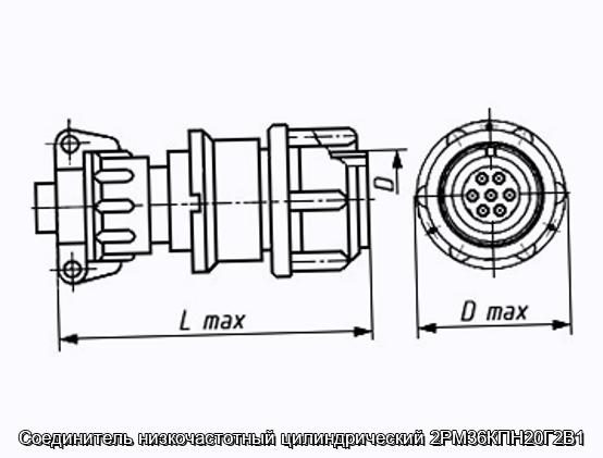 Соединитель 2РМ36КПН20Г2В1 цилиндрический низкочастотный негерметичный объемного монтажа с резьбовой фиксацией сочлененного положения.