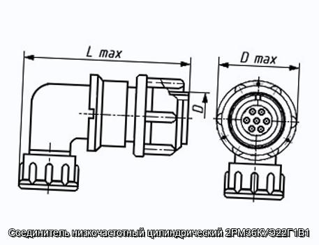 Соединитель 2РМ36КУЭ22Г1В1 цилиндрический низкочастотный негерметичный объемного монтажа с резьбовой фиксацией сочлененного положения.