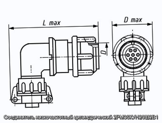Соединитель 2РМ36КУН20Ш2В1 цилиндрический низкочастотный негерметичный объемного монтажа с резьбовой фиксацией сочлененного положения.