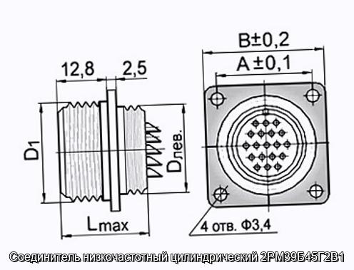 Соединитель 2РМ39Б45Г2В1 цилиндрический низкочастотный негерметичный объемного монтажа с резьбовой фиксацией сочлененного положения.