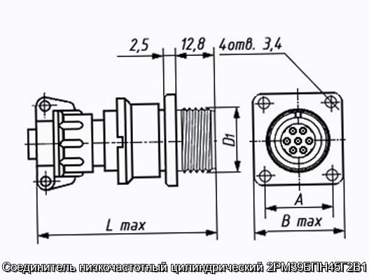 Соединитель 2РМ39БПН45Г2В1 цилиндрический низкочастотный негерметичный объемного монтажа с резьбовой фиксацией сочлененного положения.