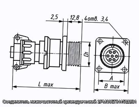 Соединитель 2РМ39БПН45Ш2В1 цилиндрический низкочастотный негерметичный объемного монтажа с резьбовой фиксацией сочлененного положения.