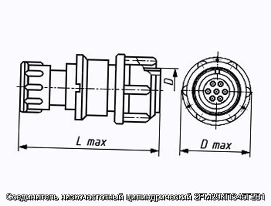 Соединитель 2РМ39КПЭ45Г2В1 цилиндрический низкочастотный негерметичный объемного монтажа с резьбовой фиксацией сочлененного положения.