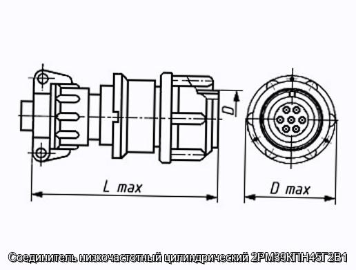 Соединитель 2РМ39КПН45Г2В1 цилиндрический низкочастотный негерметичный объемного монтажа с резьбовой фиксацией сочлененного положения.