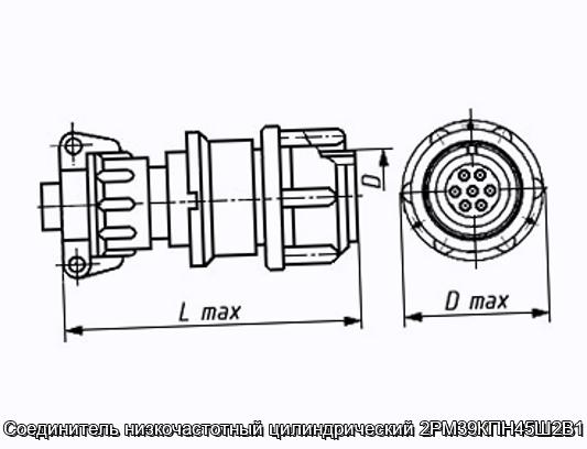 Соединитель 2РМ39КПН45Ш2В1 цилиндрический низкочастотный негерметичный объемного монтажа с резьбовой фиксацией сочлененного положения.