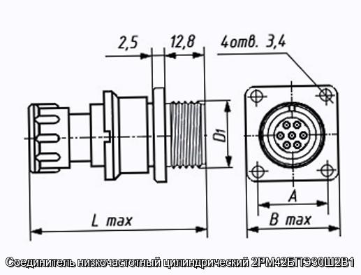 Соединитель 2РМ42БПЭ30Ш2В1 цилиндрический низкочастотный негерметичный объемного монтажа с резьбовой фиксацией сочлененного положения.